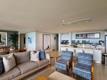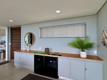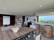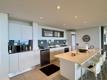 The open-plan lounge and dining area flows onto an expansive covered patio, complete with a built-in bar area, perfect for outdoor entertaining while enjoying spectacular ocean views. The Caesarstone kitchen is both sleek and functional, featuring a SMEG gas hob and oven, ideal for effortless modern living.